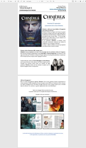 Chimeres will commence publication on September 27, 2024. Victor Battaggion will be editor in chief. And I am very pleased to say that I had a very enjoyable time being interviewed, and that interview will appear in the first issue of the magazine.